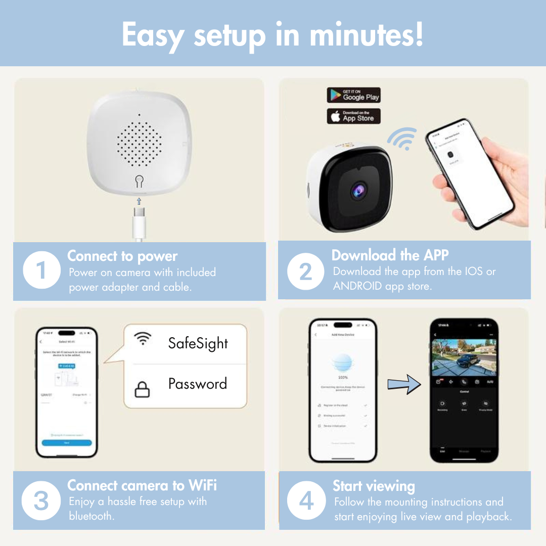 3) Download the app, connect to Wi-Fi, and start monitoring.