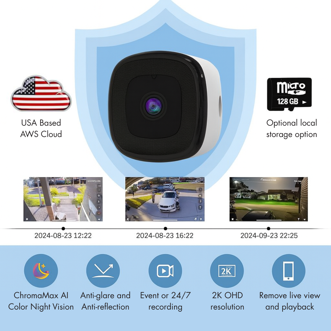 Yes — SafeSight™ includes smart AI motion detection. The camera instantly alerts you through the app whenever movement is detected, while advanced AI filters out pets, cars, and shadows to avoid the false alarms common with traditional cameras. That way, you’ll always know what’s happening around your home in real time — only when it truly matters.