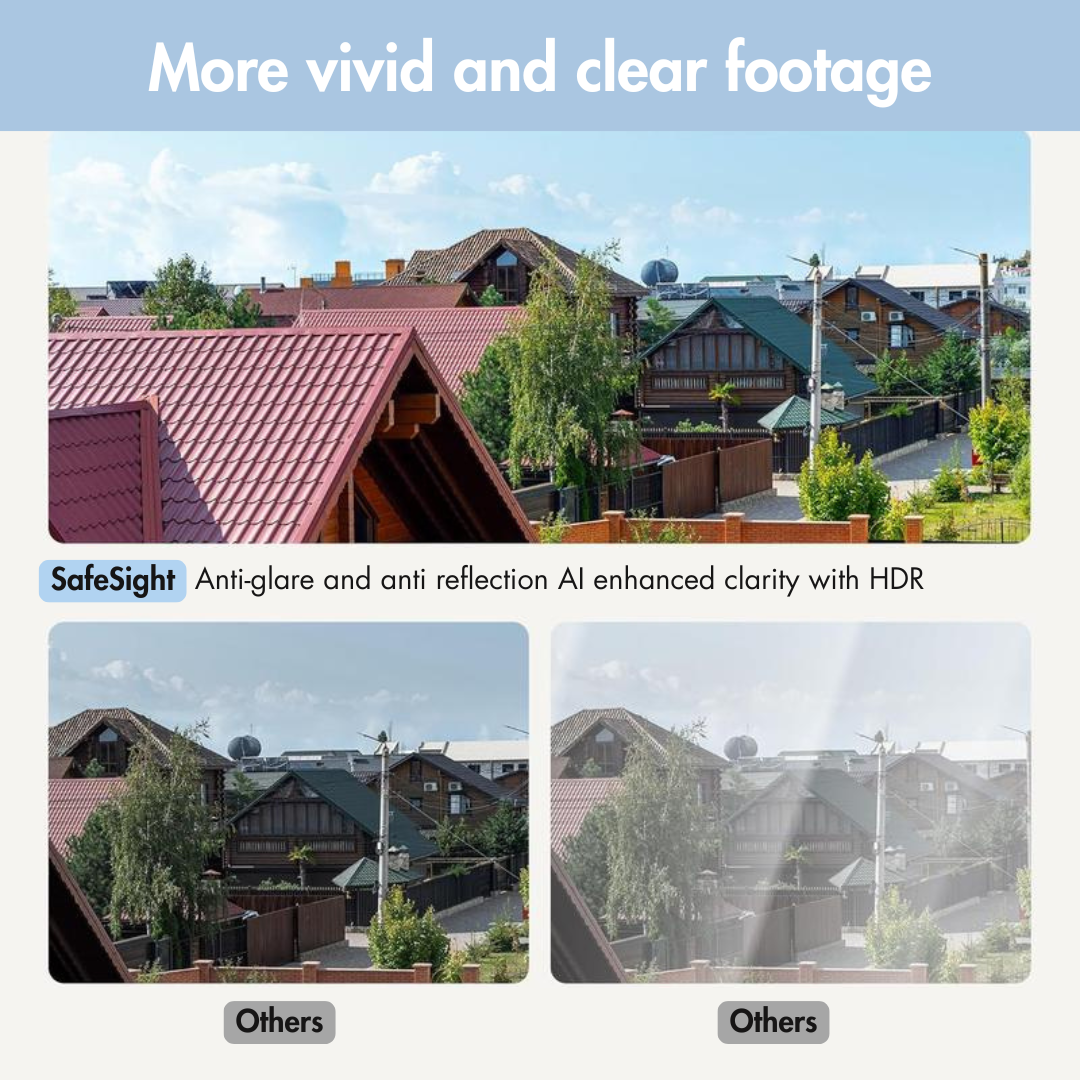 SafeSight™ uses advanced infrared and AI image enhancement to deliver sharp, color-optimized video — so you can clearly see what matters, even in total darkness.